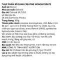 | Thành phần | 2600mg Creatine monohydrate, Vitamin B6, Taurine |